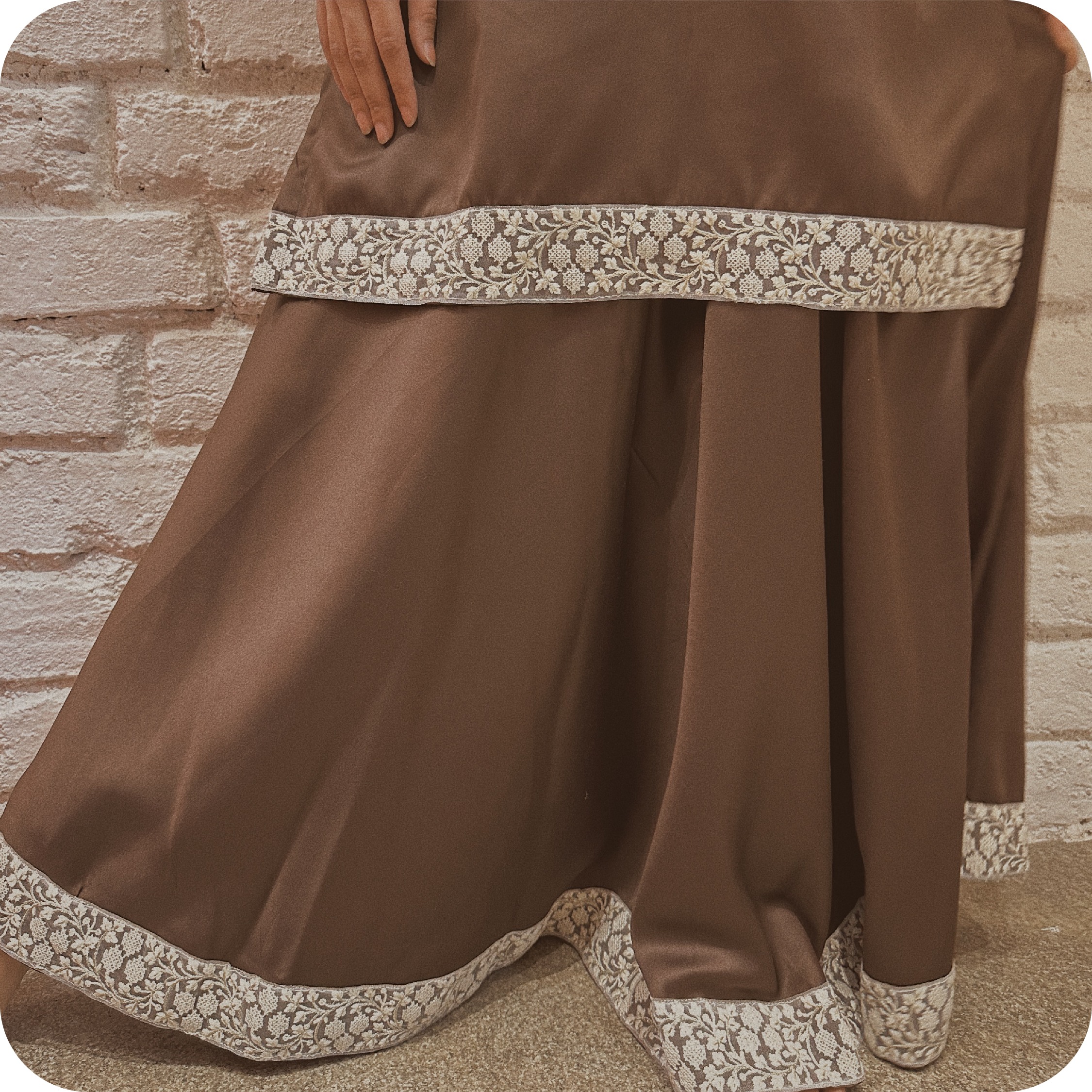 Our rich brown co-ord set exudes warmth and sophistication, crafted from premium-quality fabric that drapes beautifully for a flattering silhouette. The lehenga boasts intricate lace detailing, adding femininity and charm, while the kurta features classic lacework for a harmonious look. Perfect for the modern woman valuing traditional aesthetics with a contemporary twist, this co-ord set is a must-have addition to your collection.